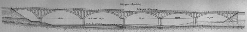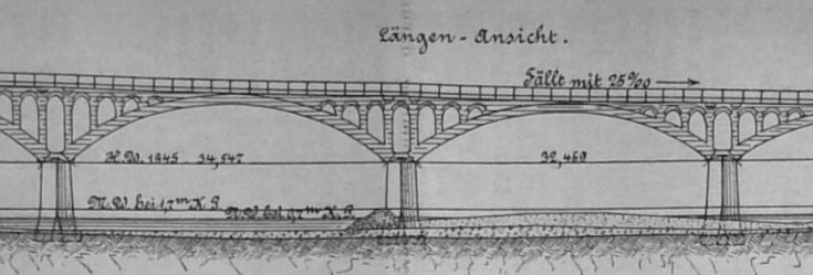 Diese Kosten dürften indessen für eine über 210 m lange, massive, unter der Belastungs-Vorschrift der Hauptbahnen gebaute, im Mittel beinahe 15 m über Flussohle hohe, wenn auch nur eingleisige Eisenbahnbrücke als sehr mässig erkannt werden und das vorliegende Bauwerk gerade durch seine geringen Kosten besonders bemerkenswerth sein.