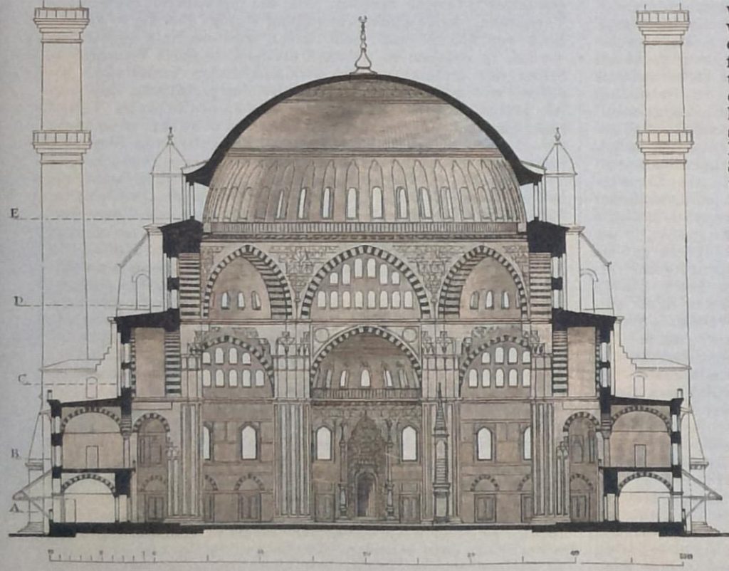 Immerhin gebührt ihr die Anerkennung eines Architekturwerkes, das der Aja Sofia in vieler Beziehung an die Seite gestellt werden kann, inbezug auf Vollkommenheit der Technik dieselbe aber sogar in manchen Punkten überragt. – Unzweifelhaft darf man in ihr den Höhepunkt der osmanischen Baukunst und damit in gewisser Hinsicht auch einen der letzten bedeutenden Ausläufer byzantischer Gewölbekunst erblicken, der in seiner Beziehung zu dieser näherer Betrachtung werth erscheint.