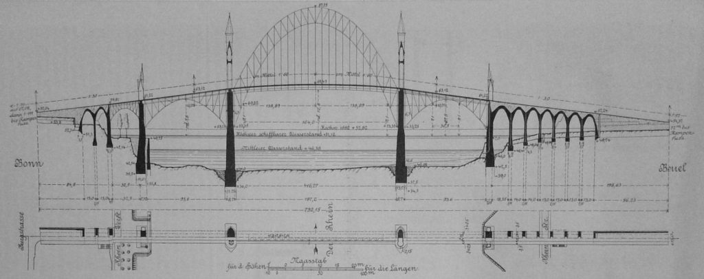Zur Geschichte der ersten Bonner Rheinbrücke, hier Teil 2: Die Konstruktion der Brücke.