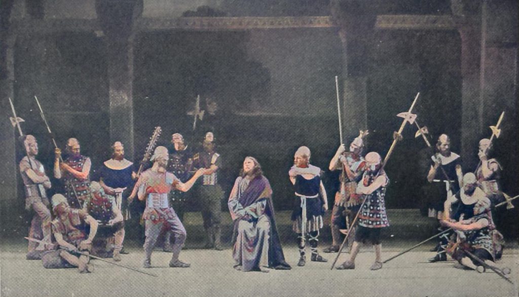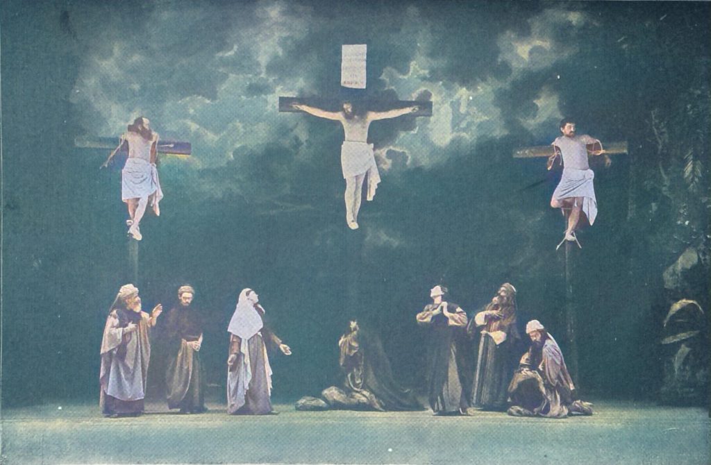 Das Theater nimmt seinen Ausgangspunkt bei den christlichen Völkern von der Religionsübung. Alle Kunst hat mit Vorliebe Christum und seine Leidensgeschichte zum Vorwurf erwählt, die Musik dankt ihr vielleicht das erhabenste Werk, Johann Sebastian Bachs Mathäuspassion; Meister der Malerei und Plastik haben in ihr die Stoffe zu wundervollen Gemälden und Bildwerken gefunden, nur im Drama sind ihr gleich edle Blüten nicht entsprossen. Auch das Oberammergauer Passionsspiel ist kein poetisches Meisterwerk, aber in seiner Natürlichkeit und der Art seiner Darstellung übt es doch stets eine ungeheure Angehungskraft aus.