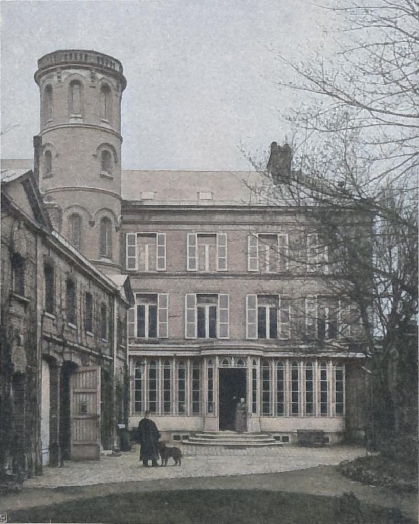 Das Wohnhaus Jules Vernes in Amiens – links Jules Verne, rechts Frau Verne
