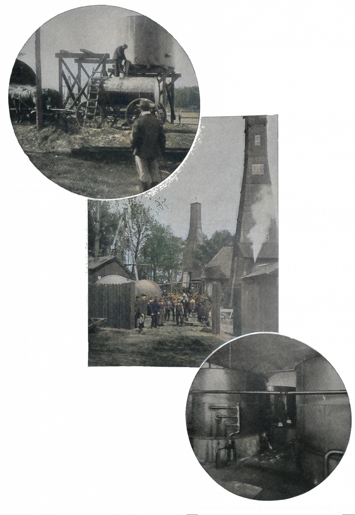 Nachdem amerikanische Unternehmer mit mir geringen Erfolgen in Wietze Bohrungen heruntergebracht hatten, kam im Anfang der achtziger Jahre der Bohrmeister Hacke aus Oelheim, um, in den Enttäuschungen, aber auch mit den Erfahrungen aus der Oelheimer Industrie ausgestattet, für seinen Chef in Wietze zu bohren. Auch hier wurde bei den Bohrungen fast das ganze Geld zugesetzt, doch der erwähnte Bohrmeister, der heute noch Inspektor eines der größten alten Wietzer Werke ist, hatte eine so feste Ueberzeugung von dem Vorbandensein des Oels unter der Wietzer Erde, daß er sich mit seinen Leuten erbot, umsonst weiterzuarbeiten. Wenige Tage darauf, im Mai des Jahres 1886, schlug Herr Hacke das erste Oel in pumpfähiger Menge in Wietze an. Die erste Dampfmaschine wurde mit Naturalien, also Oel, bezahlt; bevor man sich eine Schmiede einrichten konnte, mußte man sich damit begnügen, in dem Feuer der alten Dampfmaschine das Eisen zu glühen. Ein Kriegerverein wurde unter den Wietzer Heidebauern gegründet, und auf den Vereinsfesten wurde das Recht der Oelgewinnung auf den größten Bauernhöfen für ein Trinkgeld gepachtet. So entwickelte sich aus ganz kleinen Anfängen ein Unternehmen, das heute allein eine tägliche Produktion von etwa 300 Faß im Wert von etwa 4000 Mark hat. Allmählich zog dieses erste Unternehmen andere Gründungen nach sich, und heute ist in ganz Wietze und Umgegend die Welt verteilt. Der einfache und bescheidene Heidebauer ist meistenteils zu großem Reichtum gelangt. Einfache Heidebauern, die früher arm waren, haben heute Ministereinkommen, und es gibt Grundbesitzer, die sich auf eine Oeleinnahme bis zu 1000 Mark tãglich gestanden haben und auch gegenwärtig noch stehen.