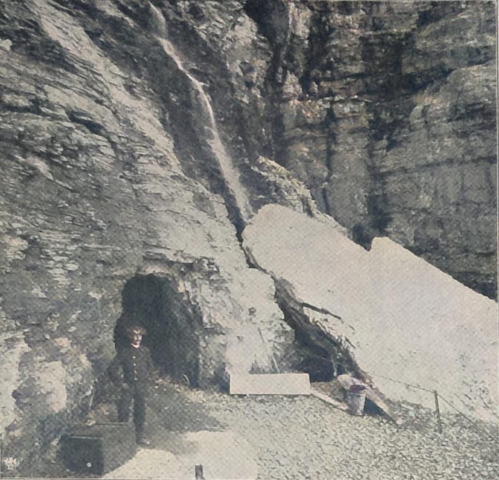 Als die Sommersonne zum zweitenmal den Schnee von den Gleisen der Hochbahn leckte, hat das Auge Guyer-Zellers sie nicht mehr gesehen. Schon jetzt konnte man übrigens den Besuchern ein hübsches Stück des Tunnels zeigen, in dem nunmehr, vom zweiten Winter an, mit verdoppelten Kräften gearbeitet werden konnte, nachdem die an der Lütschine aufgestellten Dynamomaschinen ihre Arbeit aufgenommen hatten und ihren Strom hoch in die Totenstille der Felseinsamkeit hinaufsandten. Bald wurde mit den Berliner elektrischen Bohrmaschinen und unter allnächtlichen Sprengungen dem Tunnel ein Fortschritt von 3 ½ bis 4 Meter in je 24 Stunden abgewonnen; man durfte hoffen, es täglich auf 5 Meter zu bringen, und hat dies Ziel wohl inzwischen auch erreicht. Die erste, bereits interessante Blicke in das Gebiet der Gletscher und des ewigen Eises gewährende Sektion wurde sofort nach der Einweihung eröffnet.