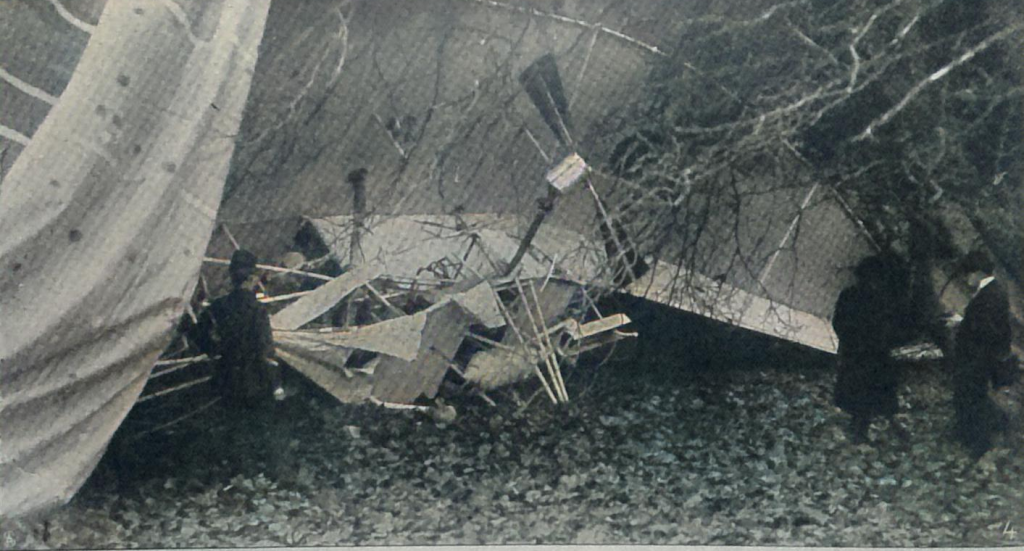 Kurz vor der Landung die Katastrophe. Der Ballon gerät gegen einen Baum und platzt.