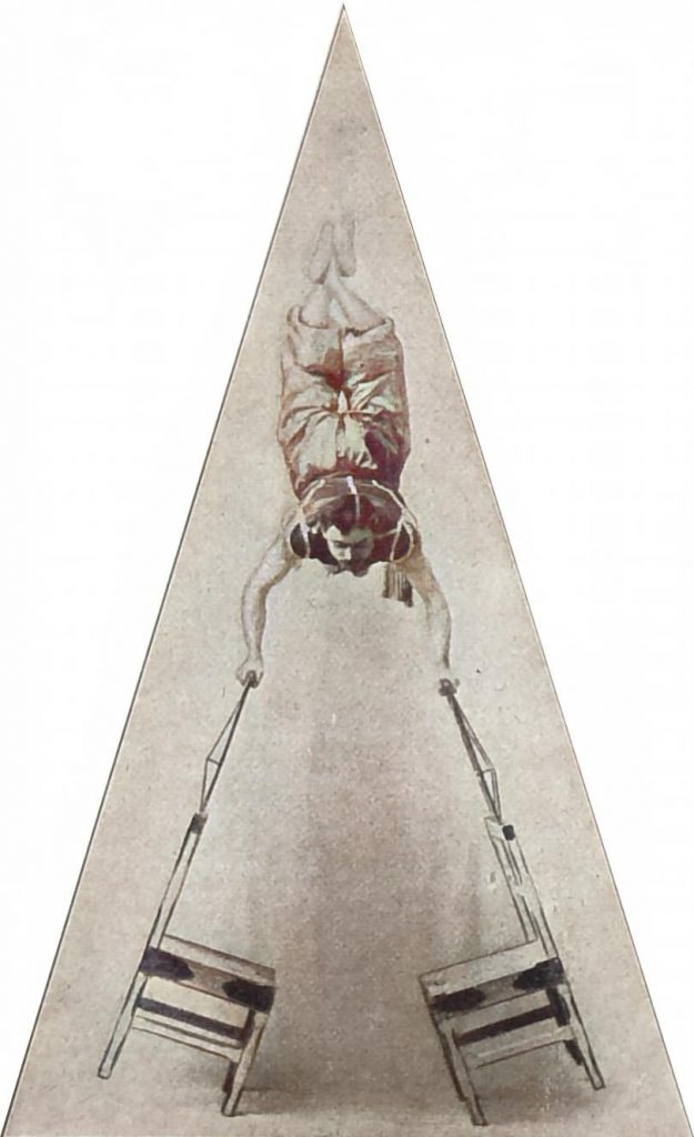 Der wirkliche, echte Artist, der seinen Leib in das straffe Trikot zwängt und durch die Lüfte sausen läßt, der bei seinen Produktionen seine Knochen zu Markt trägt, muß zu diesen halsbrecherischen Künsten sozusagen geboren werden. Schon sehr früh, im zartesten Alter beginnt unter Leitung des fachmännischen Lehrherrn, meistenteils unter Leitung des Vaters, der selbst Artist ist, die Ausbildung. Vor allem müssen die Muskeln gestärkt, die Sehnen geschmeidig gemacht werden.
