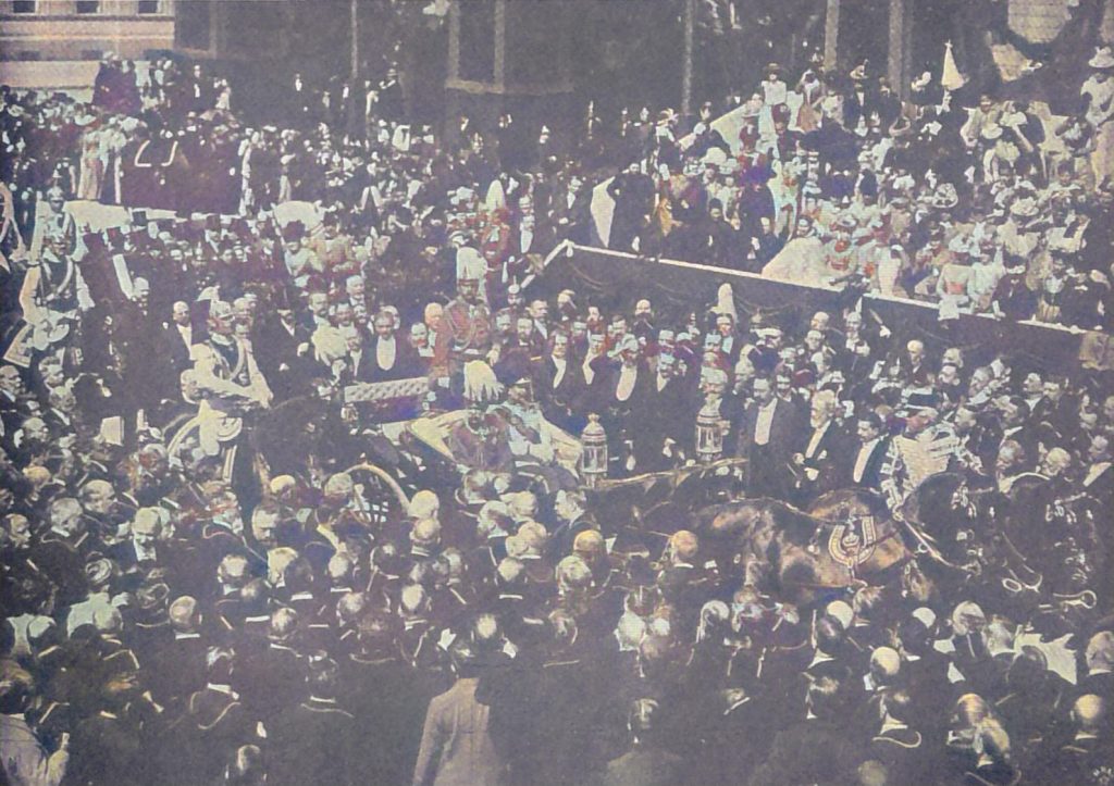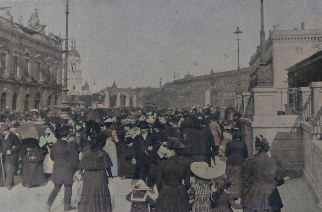 Während aller drei Festtage blieb die Straße Unter den Linden in ihrer Eigenschaft als Via triumphalis. Vom frühen Morgen bis in die tiefe Nacht hinein umstanden die Massen diese schöne Fahrbahn und es gab alle Augenblicke große Freude, wenn die berittenen Schutzmänner angesprengt kamen, die Querstraßen absperrten und nun ein Hofwagen mit erlauchten Gästen oder mit Prinzen heranrollte oder gar einer der Kaiser wieder erschien, die dann immer erneut mit Jubelrufen begrüßt wurden.