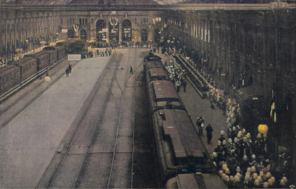 In Frankfurt a. O., der ersten Station, die der österreichische Kaiserzug nach Tagesanbruch erreichte, wurde Kaiser Franz Josef von den Herren des Ehrendienstes begrüßt, denen sich der österreichisch ungarische Botschafter, Herr v. Szögyeny-Marich, angeschlossen hatte. Die auf dem Bahnhof aufgestellte Ehrenkompagnie des Leibgrenadierregiments Nr. 8 brachte dem verbündeten Monarchen die ersten Grüße des deutschen Heeres.