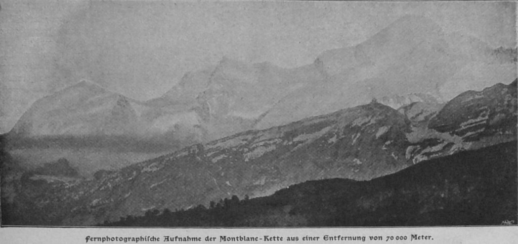 Welche Perspektive eröffnet dies Verfahren der weiteren Entwicklung der Fernphotographie! So wie wir durch das Telephon auf viele hundert Kilometer weit sprechen und hören, so werden wir durch den telephotographischen Apparat auf ebensolche Entfernungen sehen und photographieren können! Thatsächlich können wir es heute schon, nur liegt die Sache bis jetzt noch in den Anfangsstadien.
