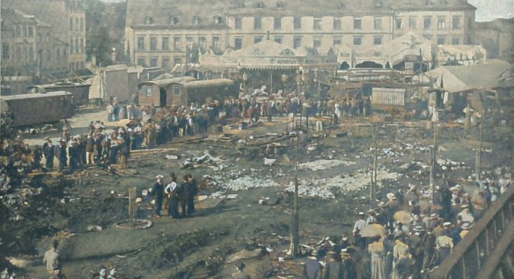 Die Petersmesse hatte gerade ihr Ende erreicht, als in einer der Jahrmarktsbuden ein Brand auskam, der in kurzer Zeit etwa ein Viertel aller Verkaufsstätten einäscherte.