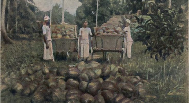 Ein 1902, nach dem Ende der Skalverei in Sansibar, erschienener Bericht über die Arbeit auf Plantagen in Sansibar.