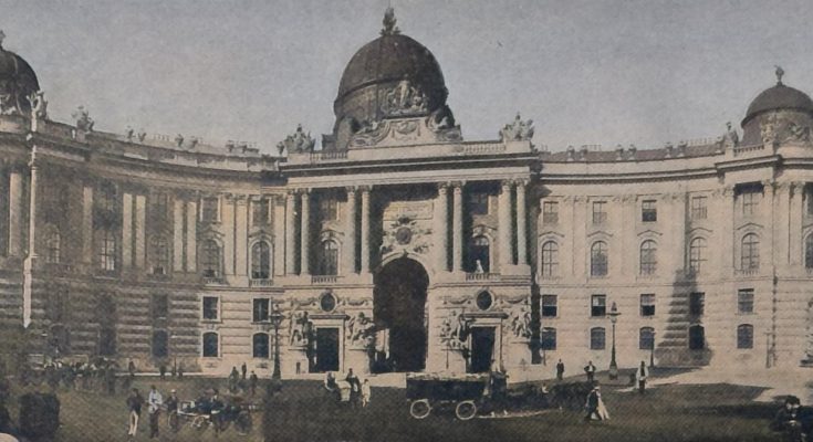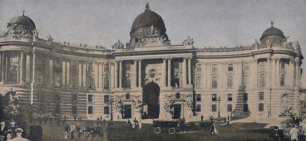 Den Künsten steht Kaiser Franz Josef als fürstlich freigebiger und herzlich teilnehmender Schirmherr gegenüber. Jener wundervolle Flügel der Hofburg gegen den Michaelerplatz zu, den unser Bild zeigt, ist eine der letzten Schöpfungen des Kaisers als Bauherr und wurde, als das alte Burgtheater niedergerissen war, treu nach den Plänen und Skizzen Fischer von Erlachs ausgeführt.
