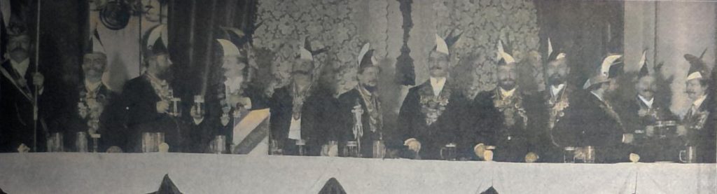 Der „Klub der Rheinländer“ mit Herrn Gülich als Karnevalspräsidenten hält in der Odd Fellow Loge seine Sitzungen ab, und der „Rheinische Verein“ (Vorsitzender Herr Vollmer und Karnevalspräsident Herr Werres) tagt in den Bismarcksälen.