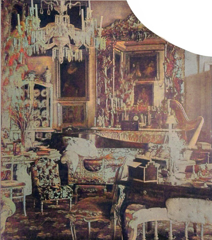 Zu diesem ewig jungen und interessanten Kapitel wollen nun beigegebene Bilder ein paar charakteristische Beiträge hinzufügen. Im Flug hurtig von den verschiedensten Enden der Welt zusammen gerafft, illustrieren sie, wie der Reichtum in den verschiedenen Ländern sich seine Wohnungen baut, wie er in Kostbarkeiten schwelgt, bald stillos, überladen, üppig wirkt, bald trotz des entfalteten Luxus feine, berückende Wirkungen zu erzielen weiß.