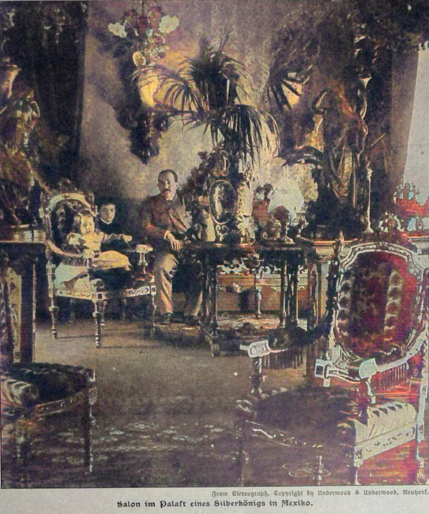 Fast einfach wirkt im Vergleich dazu der Wohnraum des Silberkönigs in der berühmten Minenstadt Guanajuanto, Mexiko. Es ist da weniger beängstigende Fülle vorhanden, aber Stil – ebensowenig. Der ganze, in französichem Geschmack beabsichtigte Raum berührt wie ein Museum, wie eine Ausstellung pretentiöss auf gestellter, schwer goldener und silberner Statuetten und sonstiger Prunkstücke.