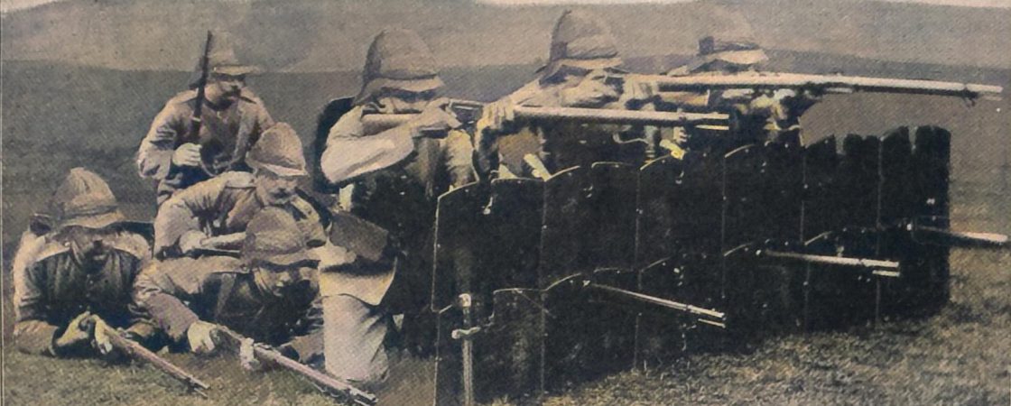 Von Versuchen Soldaten gegen Maschinengewehrfeuer zu schützen.