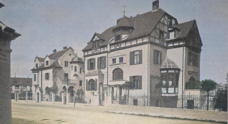 Auf diesem Gelände sind in der kurzen Zeit von 6 Jahren über 100 Häuser in Gruppen von 3 bis 14 Häusern in einer Front entstanden. Es sei nicht verschwiegen, dass gegen die geschlossenen langen Gruppen aneinander gereihter Häuser Vorurtheile bestanden haben, die jedoch zerstreut werden konnten, so dass sich zahlreiche Kaufliebhaber fanden, welche, wie die Firma erklärt, „gegenüber dem wesentlich praktischen Vortheile eines derartigen kleinen, eingebauten Häuschens dessen etwas geringeres Ansehen nicht in Anschlag brachten“. Und das umso mehr nicht, als zwischen den längeren Gruppen verstreut kleine freistehende Einzel- und Doppel-Wohnhäuser aus unmittelbarem Auftrag entstanden, die das Bild belebten und trotz der geringen Mittel, die in der Regel dazu verwendet wurden, doch Gelegenheit gaben, auch in architektonischer Hinsicht viel Eigenartiges zu schaffen. Dafür mag unsere Kopfansicht sprechen.
