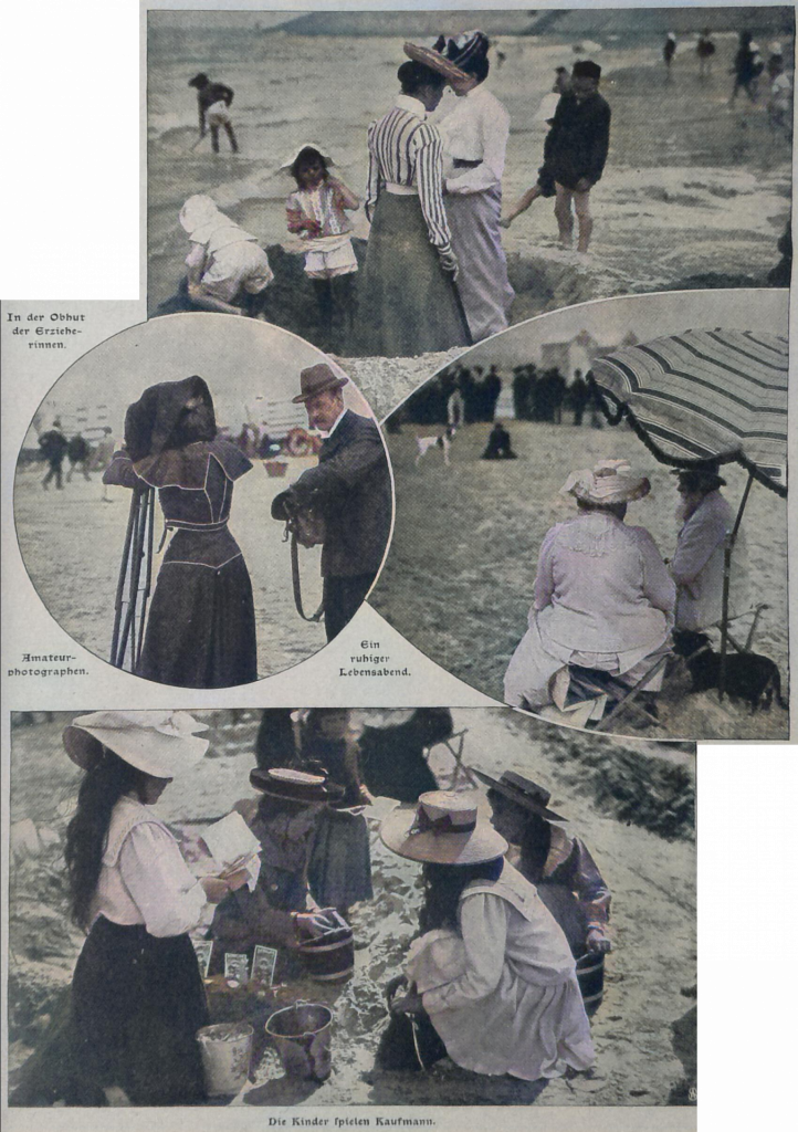 Ueberall herrscht frohe Stimmung, die mit dem Fortschreiten der Saison ständig zunimmt und die lustige Kindergesellschaft immer mehr vereint, bis endlich der Tag des Abschieds herangekommen ist und die Kleinen, „zu Tode betrübt“, ihre Spaten, Netze und Eimer beiseite legen und von ihrem Paradies Abschied nehmen müssen.