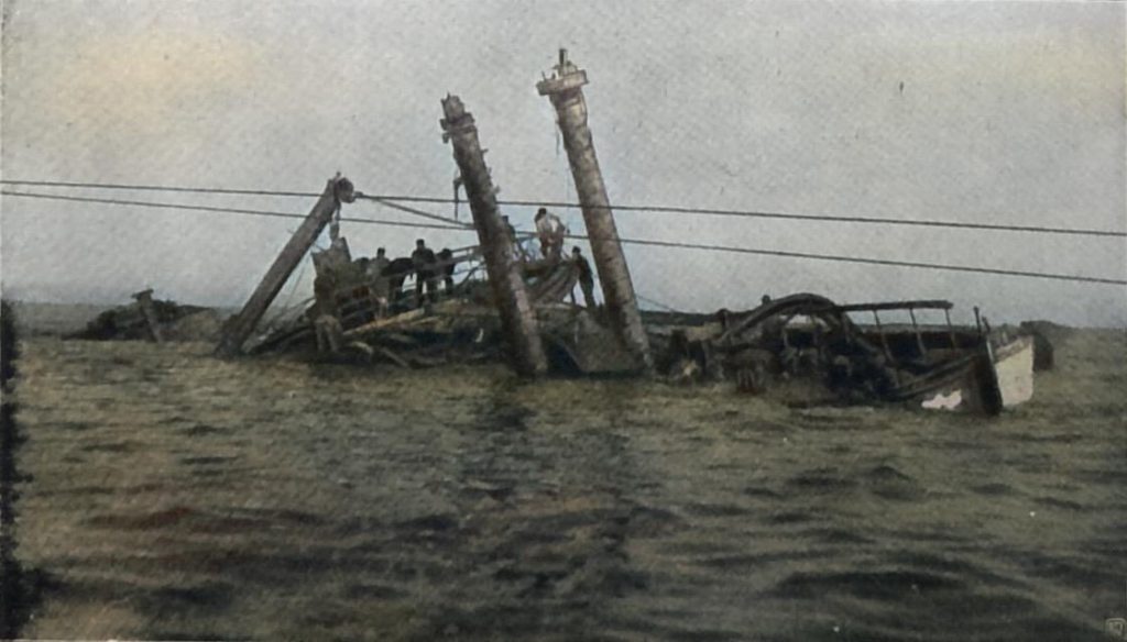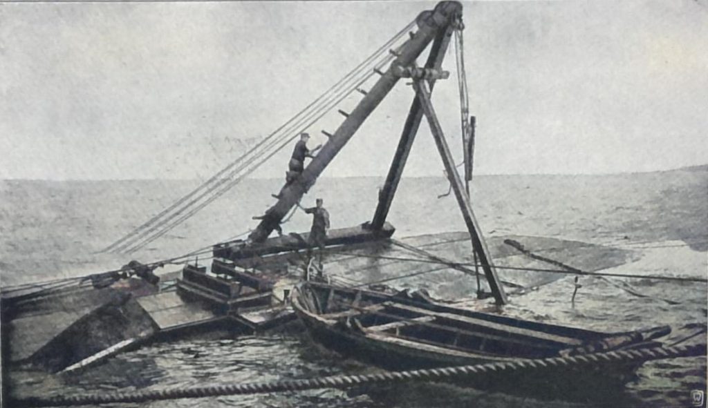 Von großer Wichtigkeit ist ferner die Beschaffenheit des Meeresbodens; ist dieser weich oder besteht er gar aus Triebsand, so versinkt ein eisernes Schiff schon nach ganz kurzer Zeit so tief, daß an eine Hebung überhaupt nicht zu denken ist.