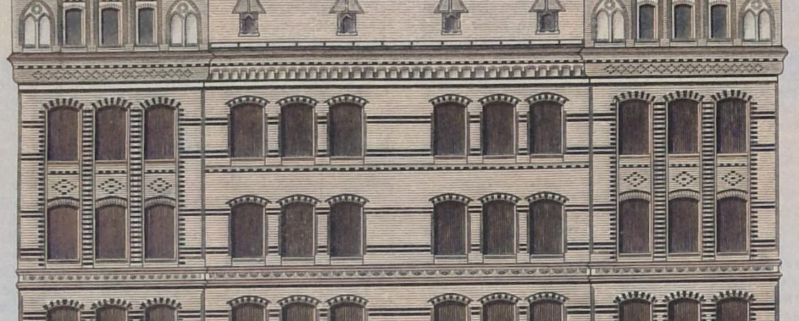 Schulhaus am Domkirchhof in Lübeck. (Eine Gewerbe-, Mittel- und Volksschule enthaltend.)