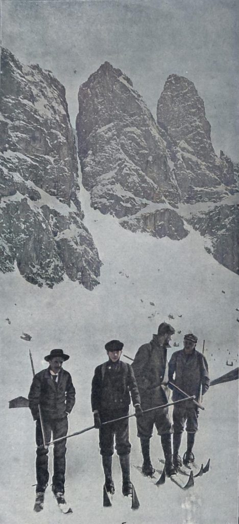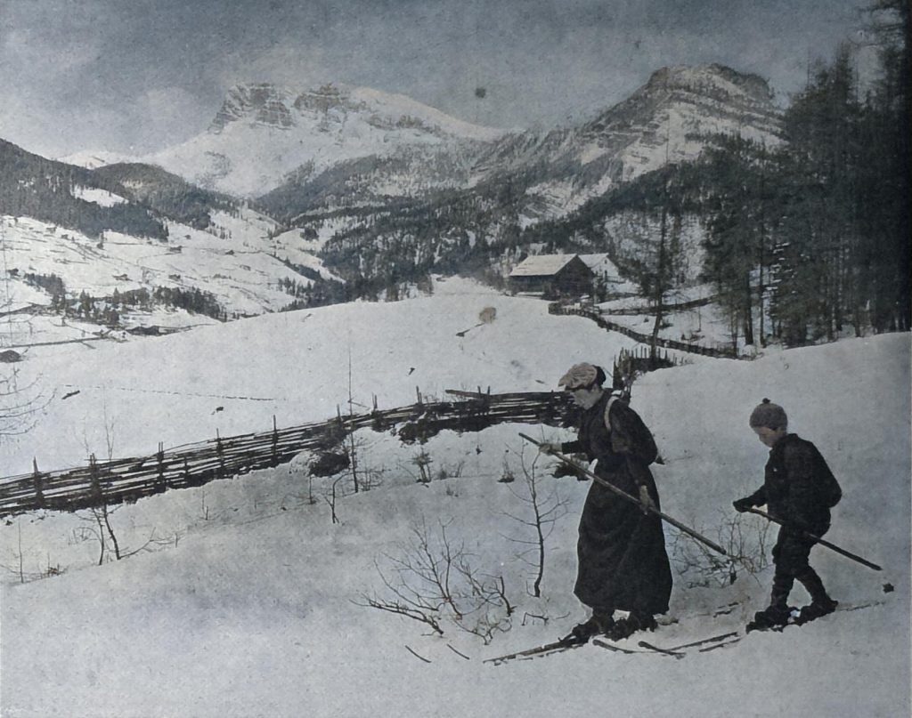 Wir erinnern uns noch jener Marterhölzer, die mit einem roh geschmiedeten, unten gekehlten und vorn schnabelförmig aufgebogenen Eisen versehen waren. Im Stiefelabsatz wurden sie durch einen Dorn, im übrigen aber mit einigen Metern Riemen befestigt, so daß der Fuß ganz umschnürt war.