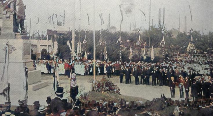 Sie hatte wohl Ursache, den Tag festlich zu begehn, obgleich die Einverleibung vor einem Vierteljahrtausend nicht gerade einem Wunsch der Herforder entsprach. Der Große Kurfürst machte der Reichsunmittelbarkeit der Stadt ein Ende, da sie sich weigerte, ihre Pflichten ihm gegenüber zu erfüllen. Nachdem er aber von ihr Besitz ergriffen und sich von den Behörden und der Bürgerschaft hatte huldigen lassen, baute er die Stadt, die im dreißigjährigen Krieg arg verwüstet worden war, wieder auf und gab ihr so die Grundlage neuen Gedeihens. In Erinnerung an diese historischen Thatsachen wurde zum Hauptstück des Jubiläums, an dem außer den Spitzen der Behörden der Kronprinz teilnahm, die Enthüllung eines Denkmals für den Großen Kurfürsten gemacht. Das wohlgelungene Werk von Heinrich Wefing zeigt den Großen Kurfürsten in freier Haltung stehend, die Rechte auf die Stadtmauer gestützt, die die Inschrift „Die Hansa“ trägt. Inschriften am Sockel erzählen dem Beschauer, daß das Denkmal zur Feier des Jubiläums errichtet worden ist.