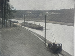 Im Jahr 1903 wurde am Teltowkanal bei Berlin versuchsweise eine Treidelbahn eingesetzt.