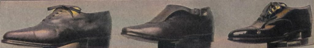 Und daß manche Thätigkeit ohne die richtige Fußbekleidung überhaupt nicht ausgeübt werden könnte, lehrt uns gerade der Anblick jedes vielbeschäftigten Kellners. Aber noch mannigfaltiger ist das Schuhzeug des Gesellschaftsmenschen. Man braucht zwar heute nicht mehr 300 Paar stiefel zu besitzen, wie der nur darob berühmte Cinq-Mars, der Günstling Ludwigs XIII. von Frankreich, und man zieht auch nicht mehr wie damals die Stiefel naß an, damit sie recht knapp den Fuß umschließen, jedoch der sogenannte „anständige Mensch“ von heute, dem die Arbeit nichts, das Urteil über seinen Anzug alles bedeutet, kann ohne eine größere Anzahl verschiedener Schuhe und Stiefel nicht „standesgemäß“ auskommen. Geht er zur Stadt in seinen Beruf oder um einen solchen herum muß er Stiefel tragen, die höchstens vorn eine Lacklederkappe aufweisen; spielt er Tennis, wodurch man sich auch fein um Berufsarbeit schlängeln kann, so muß er in weißen Schuhen stecken; erscheint er in Gesellschaft, was auch die Berufsthätigkeit vermeiden hilft, so muß er unfehlbar in Lackstiefeln wandeln; unternimmt er einen Ausflug, oder besucht er gute Freunde Gasthäuser und Seebäder, um sich von seinen Anstrengungen Beruf zu erholen, so muß er rote oder gelbe Schuhe zu geringelten Strümpfen und umgeschlagenen Beinkleidern tragen – kurz der liebe Gesellschaftsmensch hat unendlich viele, weltbewegende Verpflichtungen in seinem Schuhwerk zu erfüllen. Das ist allezeit so gewesen. Im sechzehnten Jahrhundert sind Damen und Herren, die etwas haben gelten wollen, nur in Schuhen gegangen, deren Spitzen, mit Draht gesteift und mit Werg ausgestopft, um das Doppelte der Fußlänge vorgestanden haben.