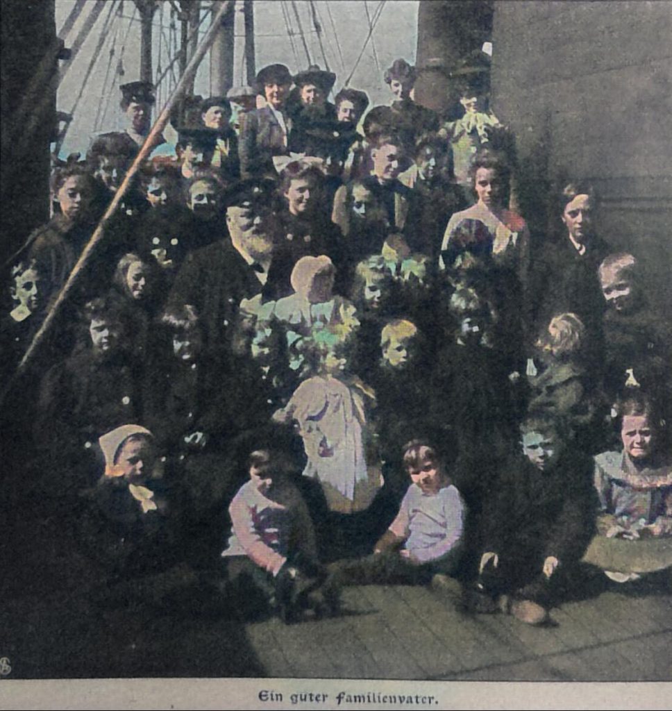 In der Tat ist es ganz erstaunlich, wie schnell und mit wie einfachen Mitteln die alten wetterfesten Seebären sich das unbegrenzte Zutrauen und die Sympathie der kleinen, ihrer Obhut anvertrauten Geschöpfe zu erringen wissen.