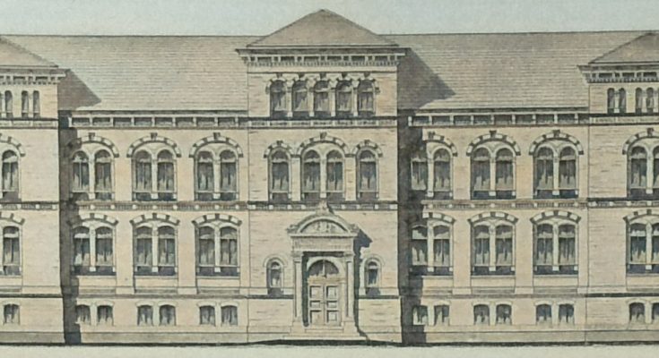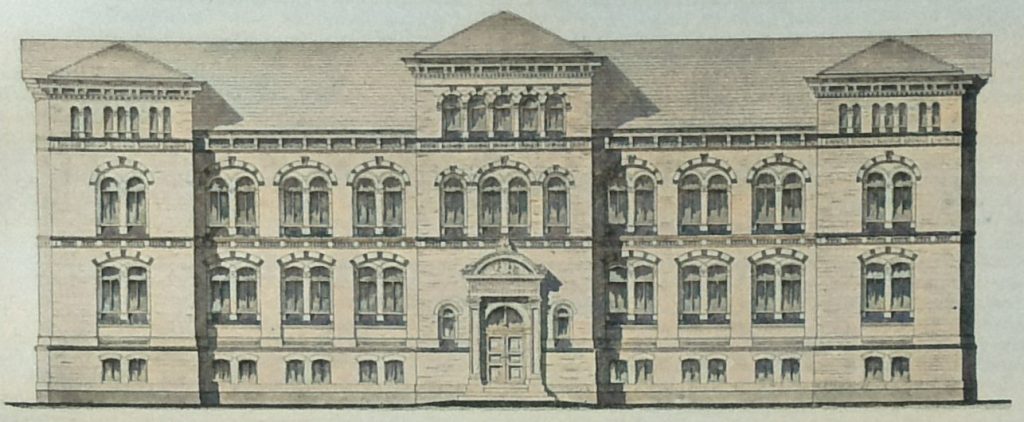 Um dem Platzmangel dauernd überhoben zu sein, wurde deshalb der Entschluss gefasst, für die Anstalt ein eigenes Gebäude zu errichten und zu diesem Zwecke ein Grundstück von 60 zu 54 m Ausdehnung an der Friedrich-Franz-Strasse hierselbst käuflich erworben.
