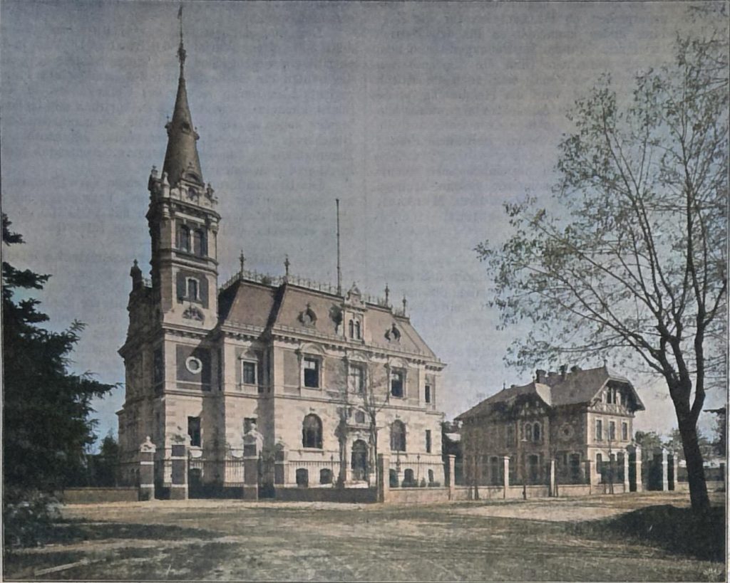 Architektur und Ausführung: Heinr. Schild in Breslau. In der Villenstadt Kleinburg bei Breslau, der durch den kürzlich in ihrer unmittelbaren Nähe angelegten Südpark weiteres Aufblühen in Aussicht steht, hat sich der jetzige Inhaber der Firma Conrad Kissling in den Jahren 1894/95 die hier dargestellte Villa bauen lassen. Der Bauplatz ist 4 Morgen gross; auf seinem westlichen Theil stehen die Gebäude; nach Osten, der Morgensonne ungehindert Einlass gewährend, dehnt sich der von dem Garten-Ingenieur A. Menzel geschickt angelegte Garten bis zur Grenze des Bauplatzes, bis zur Platanen-Allee aus.