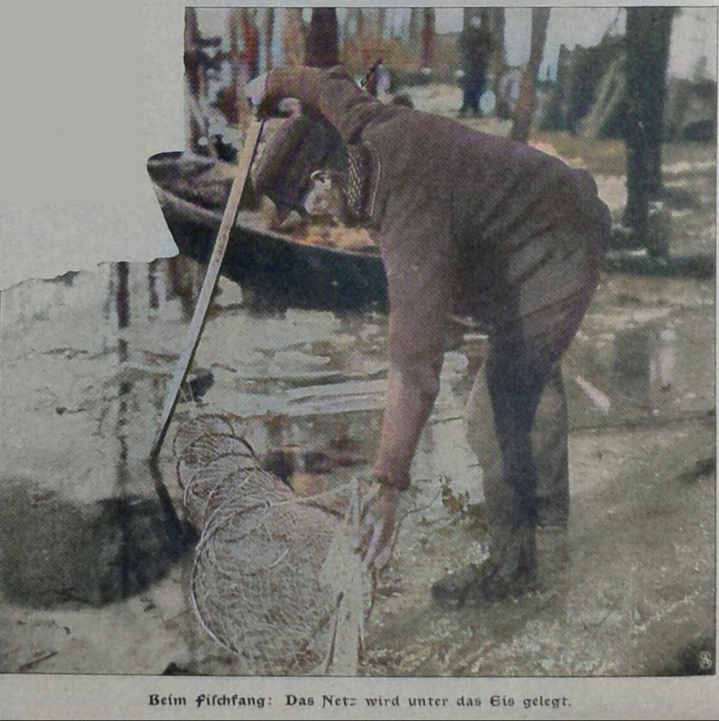 Einst bildete der Fischfang dieses wasserreichen Landstrichs eine Haupteinnahmequelle für die Bewohner, aber übermäßige Ausbeutung und verheerende Hochwasser haben dieser blühenden Industrie viel von ihrer Lebenskraft genommen. Die Gurkenzucht, eine Spezialität des Spreewalds, mag sich heute wohl besser lohnen als die Fischerei, aber noch jetzt fällt einem manche malerische Fischerhütte ins Auge, deren Wände die zum Trocknen aufgehängten Netze schmücken. Sogar im Winter ist der Spreewälder Fischer nicht müßig, und mag sich eine noch so dicke Eisschicht schützend über die Schlupfwinkel der die Winterruhe genießenden Fische ausbreiten, ihr Verfolger findet immer Mittel und Wege, um seiner Beute habhaft zu werden.