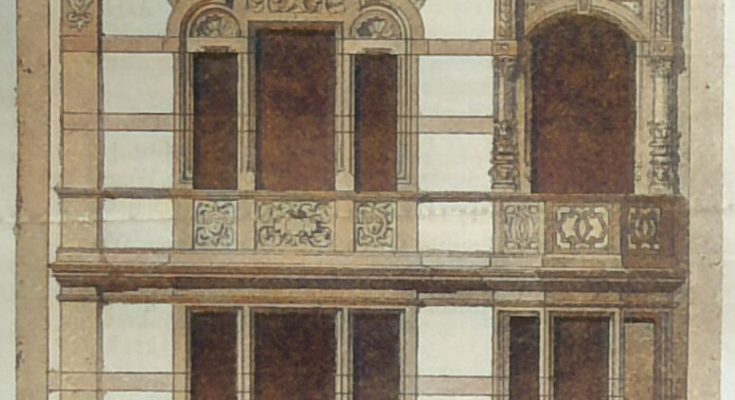 Architekt G. Revscher in Berlin. Das in dem beigefügten Fassaden-Aufriss dargestellte Wohnhaus des durch seine erfolgreichen Bestrebungen für eine – künstlerische Ausbildung der Klavier-Gehäuse in Fachkreisen allseitig bekannten Hof-Pianoforte-Fabrikanten Hrn. R. Jbach in Barmen kommt im Laufe d. J. 1890 zur Ausführung.